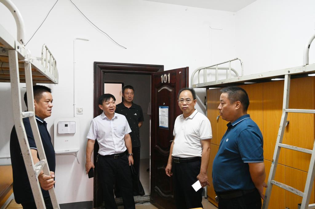 何振一行首先来到学生宿舍10、11栋,对业已改造完的宿舍楼房间的卫生、组合床柜桌、洗漱台等进行了细致查看,听取了相关部门负责人对宿舍改造情况的汇报。何振指出,学生宿舍是学生学习、生活和休息的重要场所,也是开展思想政治教育的重要课堂。宿舍环境与学生的幸福感、对学校的满意度息息相关。相关部门要立即行动,一项一项对照质量标准查漏补缺,对于发现的问题务必在开学前整改到位,力争让学生住得舒心、学得安心。