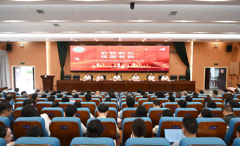 汤放华代表学校向全校广大教师、教育工作者和离退休教职工致以节日的问候和崇高的敬意,向获得表彰的先进个人和集体表示热烈的祝贺,并简要介绍了过去一年学校在师德师风建设、教师管理改革和待遇保障、教师队伍建设、学科专业建设、教学科研、办学条件等方面取得的丰硕成果。他表示,学校以办好人民满意的教育为目标,主动服务实现湖南省“三高四新”美好蓝图,坚持立德树人,深入开展学习贯彻习近平新时代中国特色社会主义思想主题教育,汇聚起攻坚克难、团结奋进的强大力量,推动了学校高质量发展。