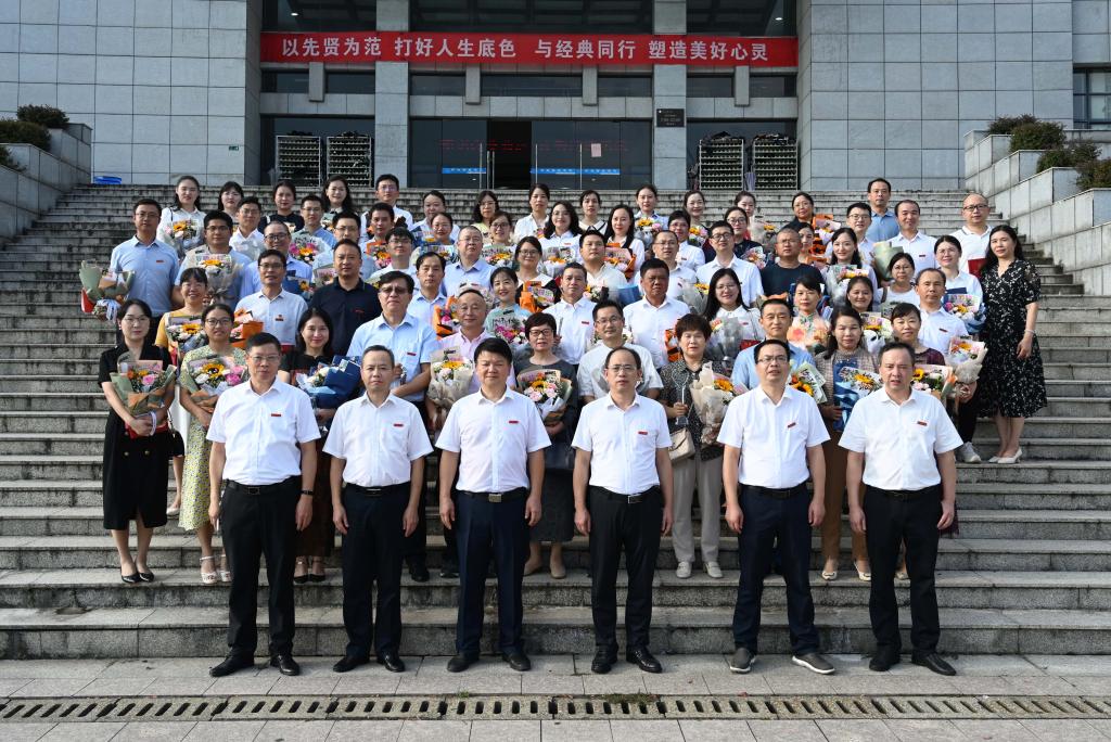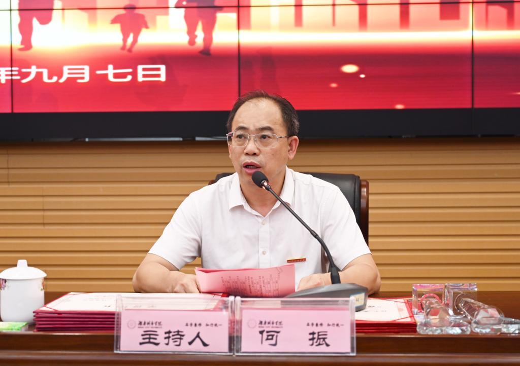 何振宣读了国家基金项目获得者和新增硕士点及省部级以上教学科研平台基地名单;副校长夏宏宇宣读了湖南省教育工会2022年度芙蓉百岗明星和学校2022-2023学年度“师德先进个人”名单;副校长袁志成宣读了专业认证通过情况、省级教学竞赛获奖者名单、省级创新创业教育中心和教育基地情况;纪委书记陈列尊宣读了2022年度单位目标管理考核先进集体及单项奖,2023年“光荣从教三十年”奉献奖、优秀教育工作者、优秀教师名单。