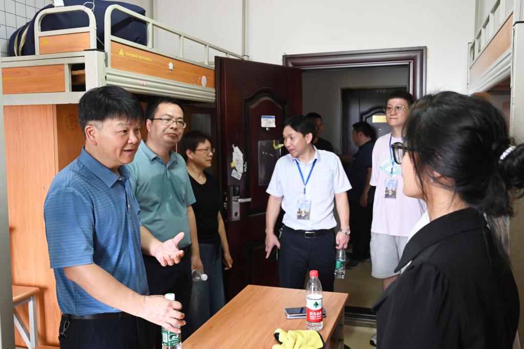 “请问你来自哪里?学的什么专业?”在学生宿舍22栋416室,汤放华与来自山东威海的建筑学专业的新生王悦仔细交谈。当了解到王悦今后想成为一名优秀的建筑师时,汤放华频频点头予以肯定,鼓励她珍惜大学时光,锚定目标不放松,预祝她在城院收获成长,努力成为可堪大用、能担重任的栋梁之才。