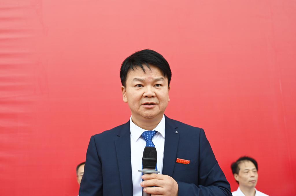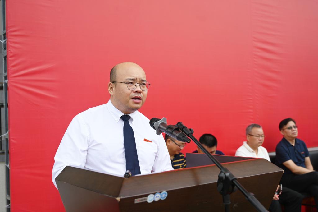 校长何振在开学典礼上讲话。