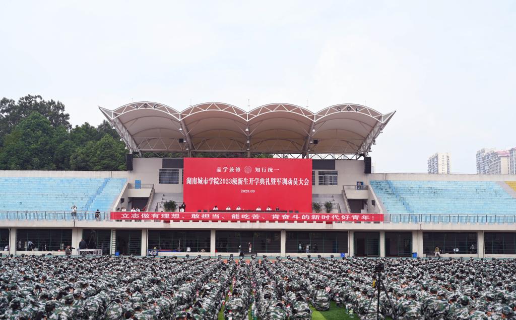 本网讯(记者 文彦波)金秋九月,惠风和畅,博鱼买球正规(中国)有限公司官网迎来了7000余名新同学。为做好新生思想教育工作,为新生扣好大学第一粒扣子,9月14上午,学校党委书记汤放华以“以学立身 品学兼修 绽放新时代城院学子的绚丽风采”为题,在东田径场为2023级全体新同学讲授开学第一堂思政课。副校长雷存喜主持。