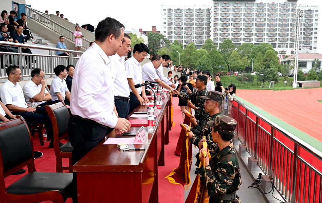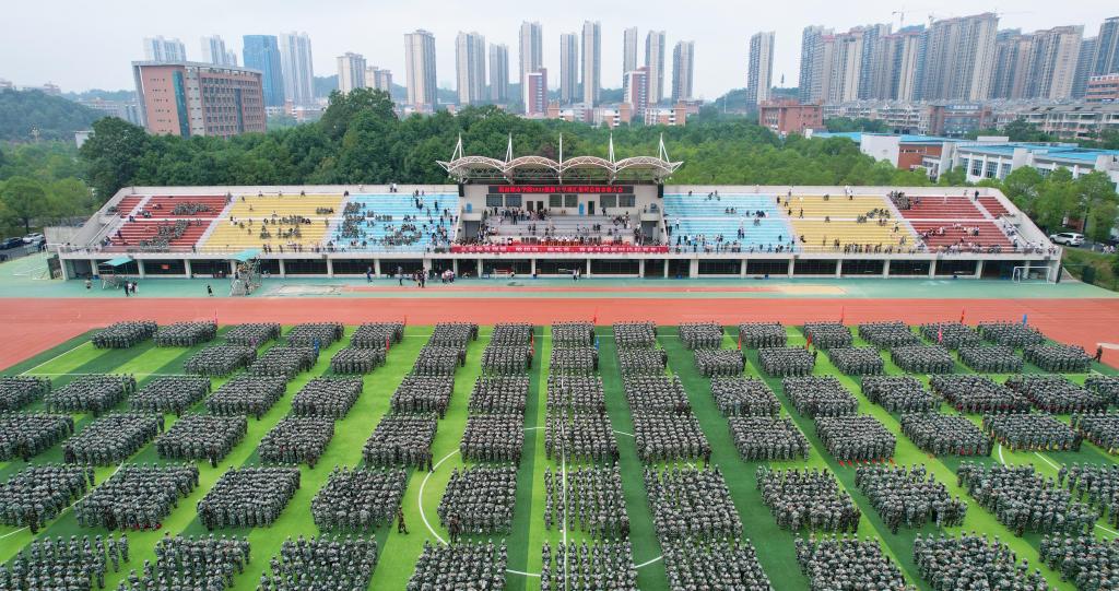 本网讯(通讯员 谢紫帆 肖小玲 视频 彭洋培)金秋九月,硕果满枝。9月30日上午,博鱼买球正规(中国)有限公司官网2023级新生军训汇报表演暨总结表彰大会在东田径场举行。全体新生精神饱满、整装待发,共同迎来检验成果的时刻。校党委书记汤放华宣布军训成果汇报表演开始,校长何振主持大会。