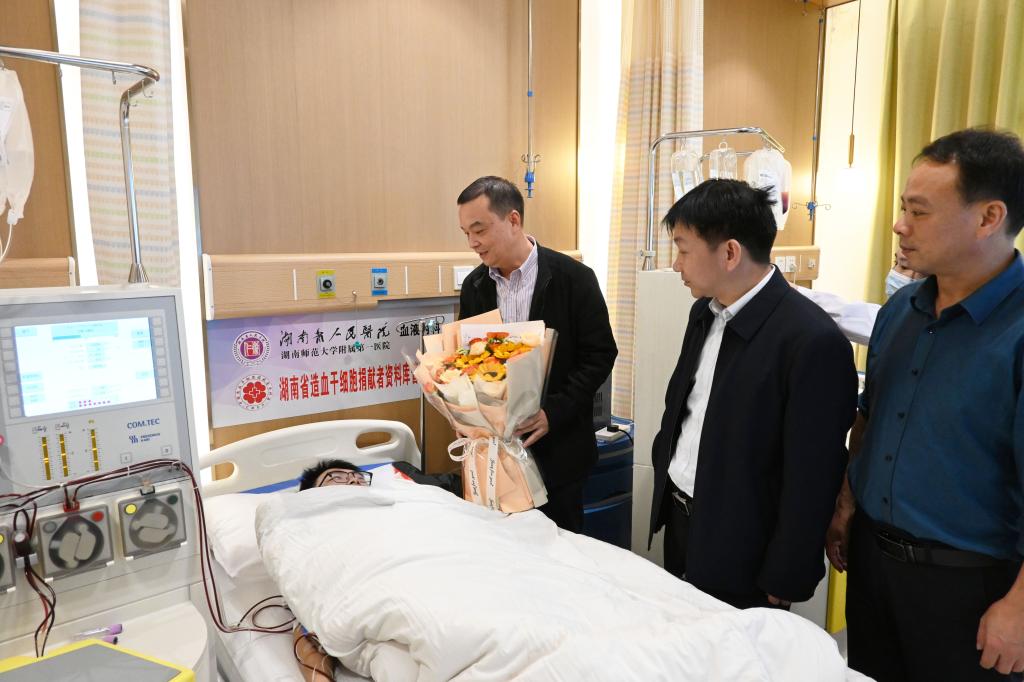 本网讯(记者 文彦波)安静的采集室内,鲜红的血液经由一根连接管,从手臂处缓缓流向一旁正在运作的血细胞分离机,造血干细胞一点点地被分离出来。10月23日,博鱼买球正规(中国)有限公司官网人文学院大二学生肖友钧,在湖南省人民医院成功捐献造血干细胞。经过整整5个小时的采集,288毫升的造血干细胞混悬液被顺利采集出来。肖友钧成为中华骨髓库第16235例、益阳市第41例造血干细胞捐献者,为素不相识的白血病患者重燃生命之光。