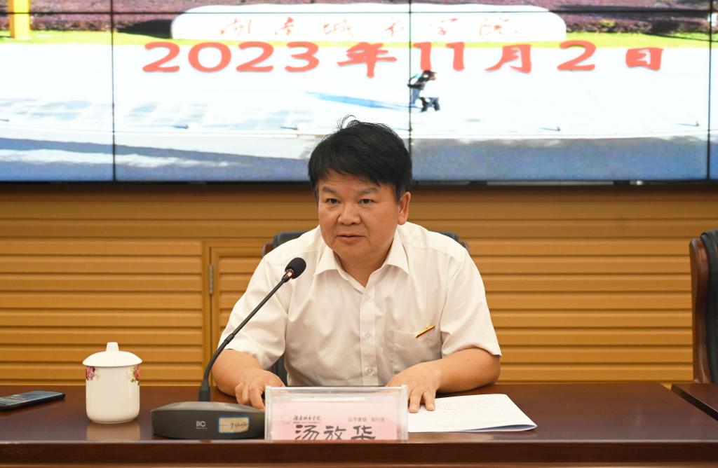汤放华作审核评估迎评工作动员讲话。他指出,本次审核评估是对我校本科教育教学工作的一次全面总结和把脉问诊,也是新形势下进一步深化本科教育教学改革,实现未来长远发展目标的又一次重要契机。