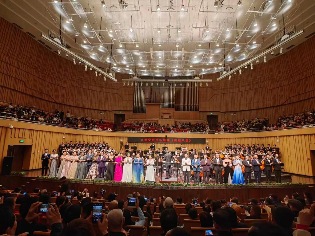 本网讯(通讯员 谢立新 夏凡)11月30日晚,大型交响声乐套曲《潇湘八景》在长沙音乐厅进行全国首演,我校澄音合唱团应邀参加演出。