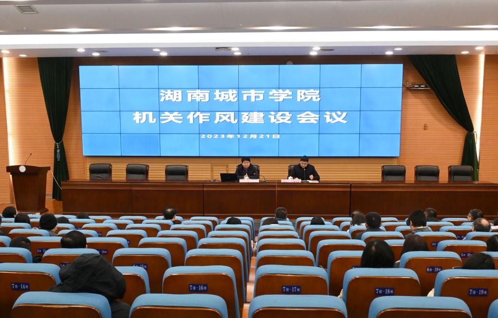 本网讯(记者 博夕)12月21日,我校机关作风建设会议在图书馆报告厅召开。校党委书记汤放华出席并讲话,强调要以党的政治建设为统领,把“围绕中心、建设队伍、服务群众”作为机关工作的主线,在思想解放、干事创业、担当作为、严格要求等方面走在前面,建设让学校党委放心、让师生满意的模范机关。