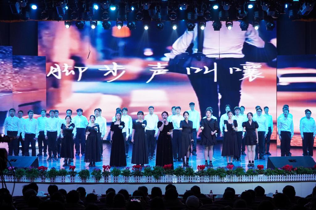 随后,室内乐《勇敢的心》、合唱《孤勇者》和《ritmo》依次上演,深刻诠释了中华儿女爱国爱民热烈而勇敢的心;情景剧《有我》为“清澈的心,只为中国”的战士陈祥榕续写一封家书,生动展现了新时代青年团结一心跟党走、斗志昂扬踏征程的坚定初心与使命;我校首届研究生带来的歌曲《这世界那么多人》,表现了硕士学子们踔厉奋发、笃行不怠,“研”续新梦想、开启新征程的精神面貌;乡村振兴特别节目《爱我苏溪》,村民用自己的“村歌”深情展示了我校乡村振兴定点帮扶村——苏溪的蝶变,深刻再现了学校积极响应国家号召,探索“可复制、可持续、可推广”的乡村振兴历程。“梦在飞,梦在飞,我的梦在黄河的浪尖尖上追,我的梦在高原的云端端中相随。”晚会在省精神文明建设“五个一工程”奖优秀歌舞《梦在飞》中徐徐落下帷幕。