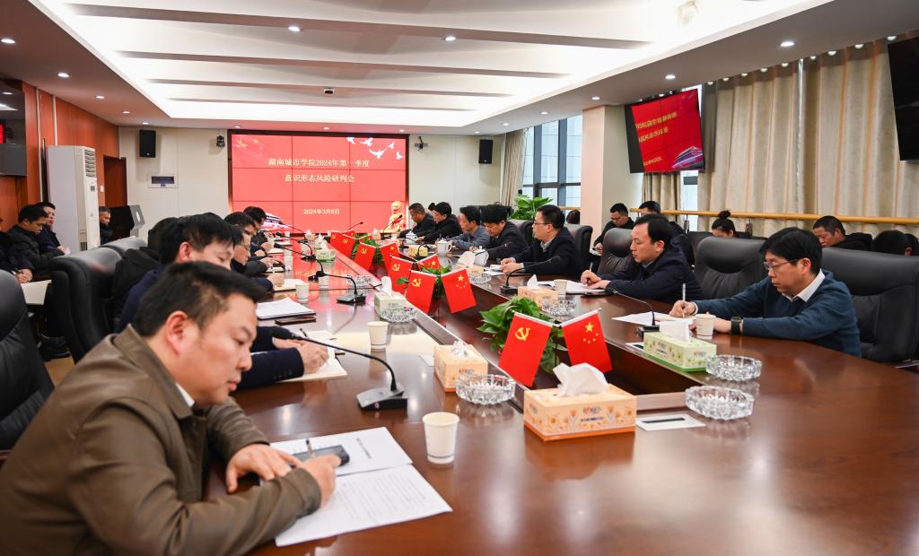 本网讯(通讯员 蔡润晨)3月6日,我校在一办公楼一会议室召开2024年第一季度意识形态风险研判会,分析新学期开学阶段意识形态领域出现的新情况、新问题,部署当前和今后一个时期的意识形态工作。党委书记汤放华出席,会议由党委副书记袁志成主持。