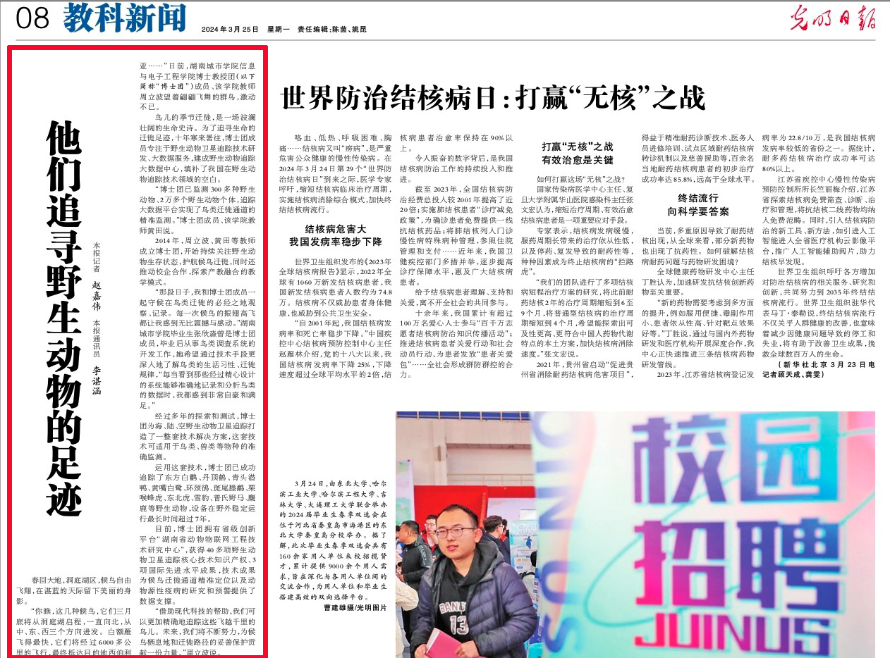 《光明日报》3月25日第8版报道博鱼买球正规(中国)有限公司官网博士团聚焦野生动物卫星追踪技术研发。