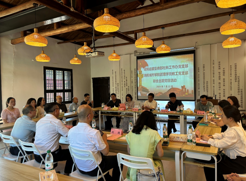 本网讯 2024年7月22日下午,省社科工作办党支部和博鱼买球正规(中国)有限公司官网管理学院教工党支部在益阳市清溪村联合开展主题党日活动。省社科工作办党支部书记陈湘文及支部全体党员,博鱼买球正规(中国)有限公司官网党委书记汤放华和管理学院教工党支部党员代表参加了本次活动。