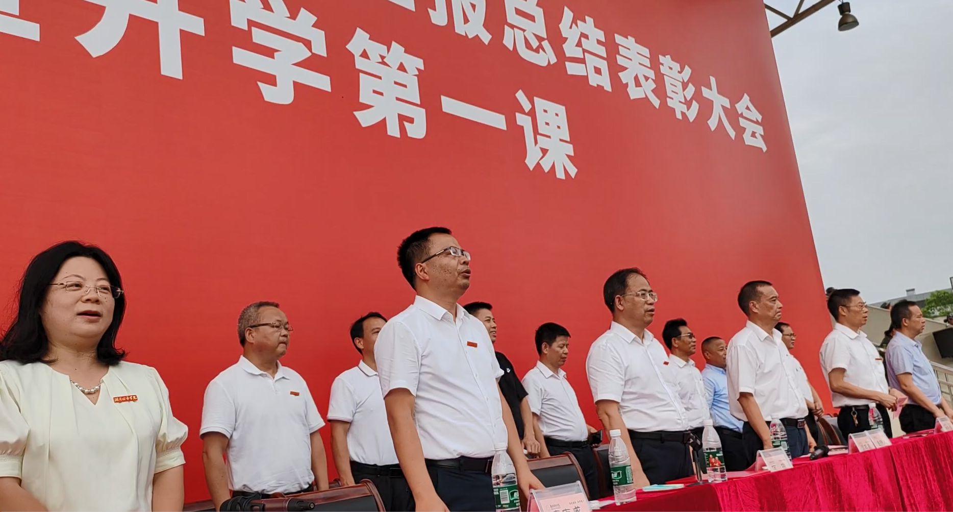 “我和我的祖国,一刻也不能分割……”伴随着悠扬的旋律,洋溢着青春的热情,大会在全场师生共唱《我和我的祖国》中落下帷幕。