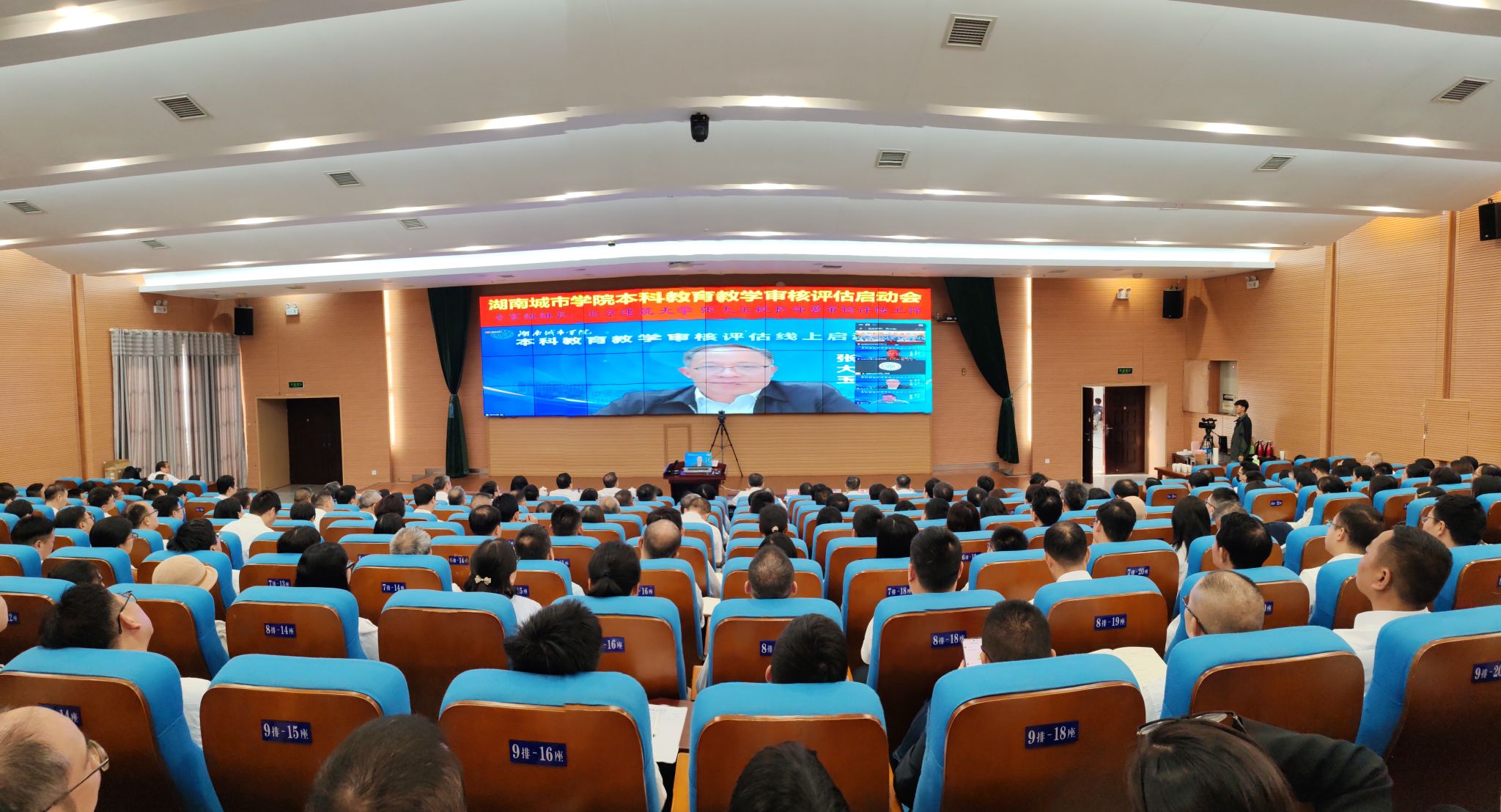 专家组组长、北京建筑大学校长张大玉,专家组全体成员,省教育厅副厅长兰勇,专家组项管、秘书线上参会。我校全体校领导,副处级以上干部,各学院系室主任,评建办、教务处全体成员以及师生代表参加会议。