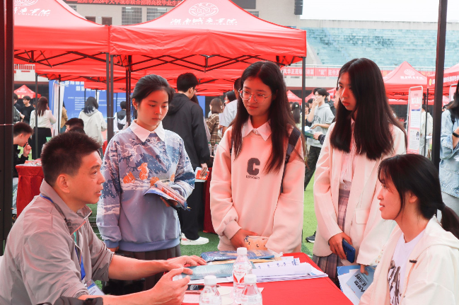 本网讯(通讯员 朱怡 冷紫怡)10月17日,湖南省高校毕业生就业区域性行业性常设市场(益阳片区)暨博鱼买球正规(中国)有限公司官网2025届毕业生秋季综合双选会在东田径场举行。校长何振、党委副书记袁志成来到现场指导就业工作。