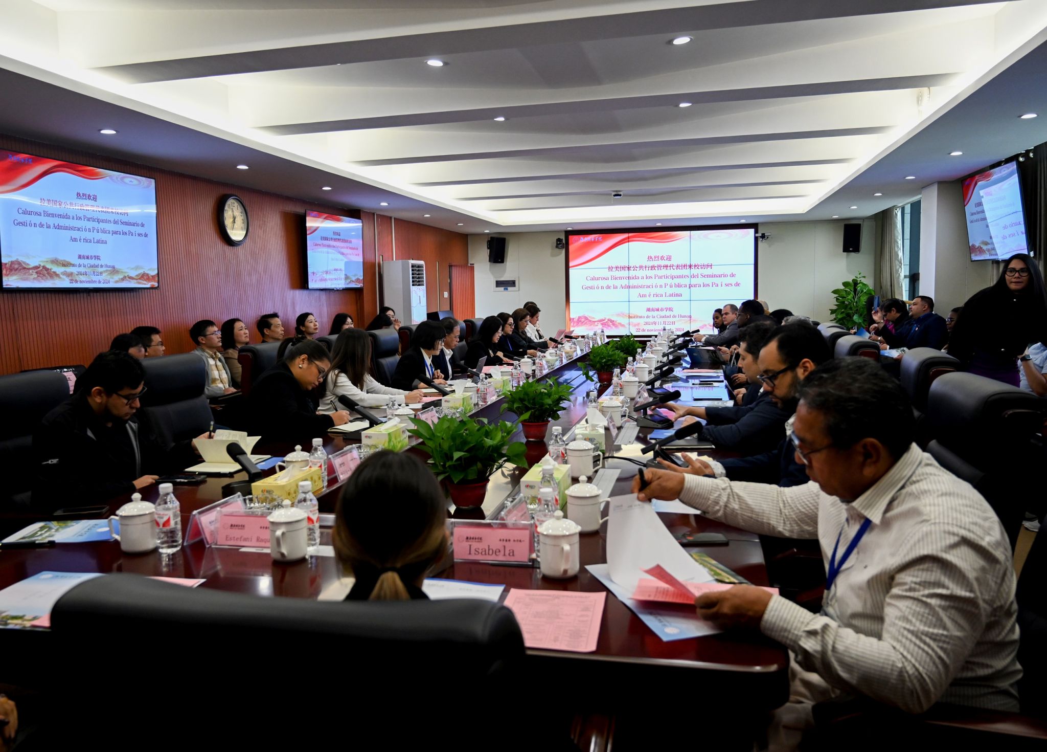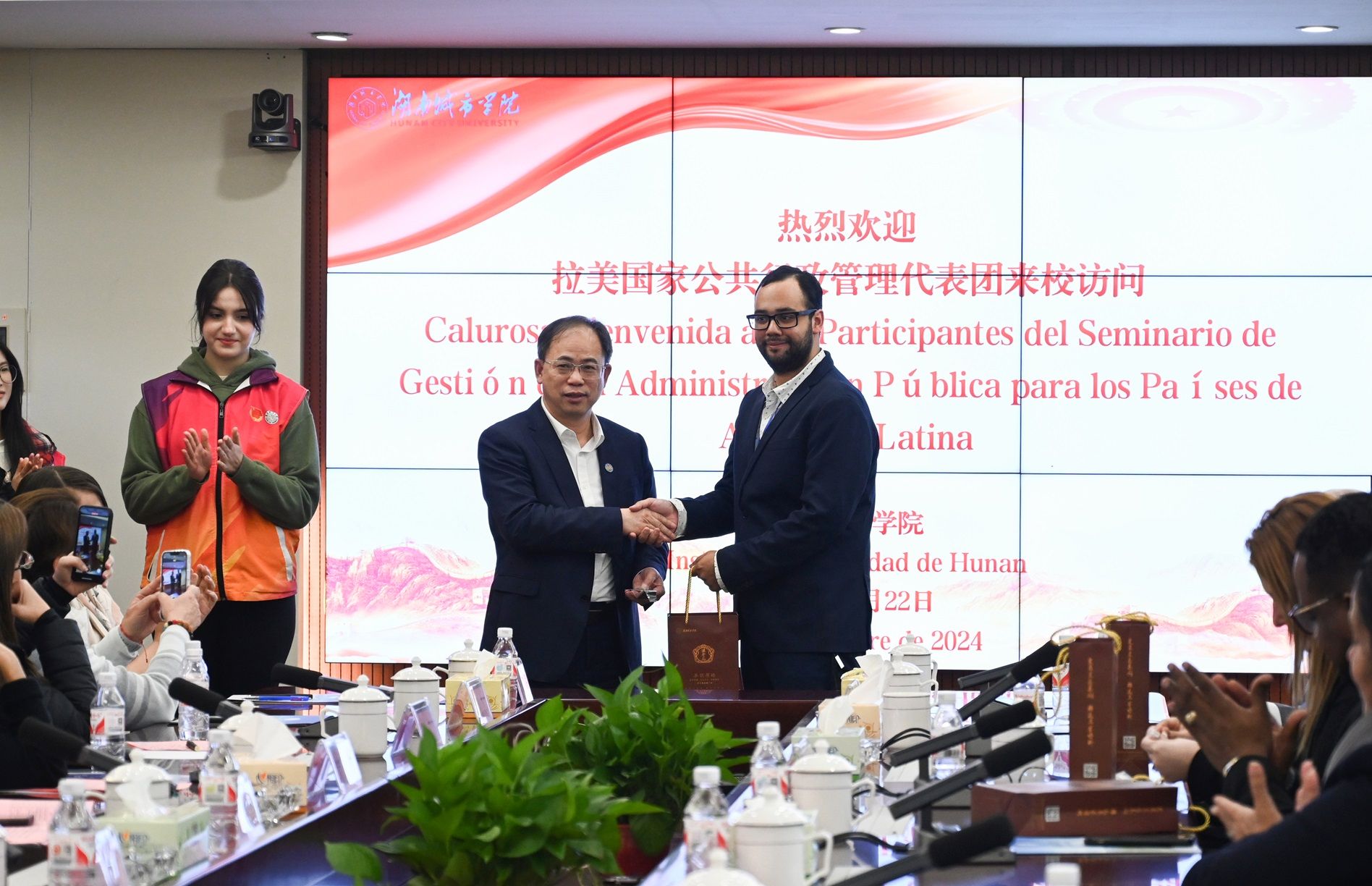 本网讯(通讯员 丁鸣)11月22日,拉美国家公共行政管理代表团来校访问,来自拉美地区8个国家的35位官员代表与我校师生进行了深入交流。校长何振、副校长徐姝出席交流座谈会。