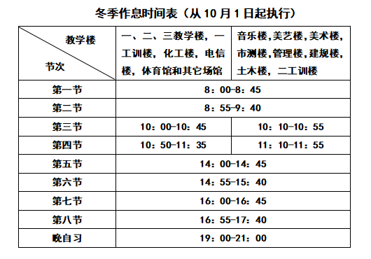 (三)从10月1日起,学校执行冬季作息时间见附件)。
