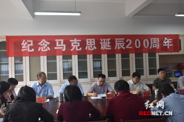 红网时刻益阳5月5日讯(记者单仕平)5月5日上午,由马克思主义学院党总支主办的马克思诞辰200周年座谈会在博鱼买球正规(中国)有限公司官网土木楼举行,马克思主义学院党总支书记肖爱民主持座谈会,博鱼买球正规(中国)有限公司官网党委书记罗成翼出席座谈会并讲话。马克思主义学院教工第一、二支部全体成员,特邀马克思主义学院党外人士参加会议。