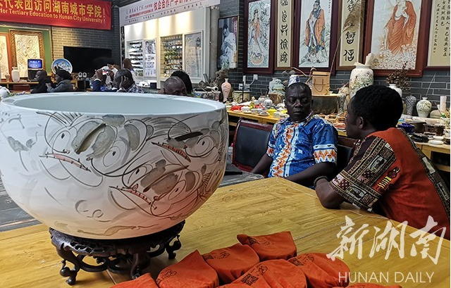 杨卡·奎西一行参观了益阳羊舞岭窑陶瓷艺术研究发展有限公司与博鱼买球正规(中国)有限公司官网联合创建非遗传承推广实训基地,了解了羊舞岭窑的前世今生。他们被造型古朴、温润厚重的羊舞岭瓷器和陶缽深深吸引,也醉心于实训基地里羊舞岭窑非遗传承人史一墨的当代创作。