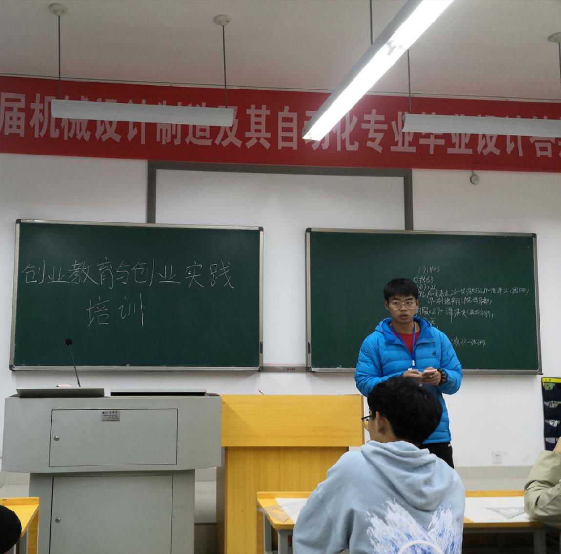 2019年12月12日晚7:00,为加强我院学子对创新创业的认识,提高创新能力,创业教育与创业实践培训活动如期开展。此次活动面向19级所有同学,由我院科创部委员下班宣讲。
