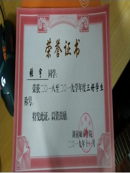 校三好学生,获得博鱼买球正规(中国)有限公司官网第十一届数学竞赛二等奖,机械与电气工程学院合唱比赛团体第一名的荣誉。