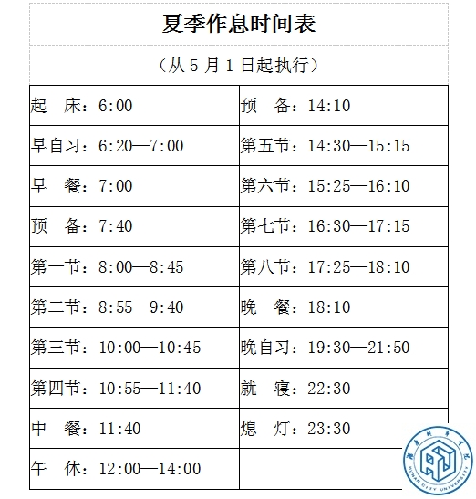 附件 1.夏季作息时间表